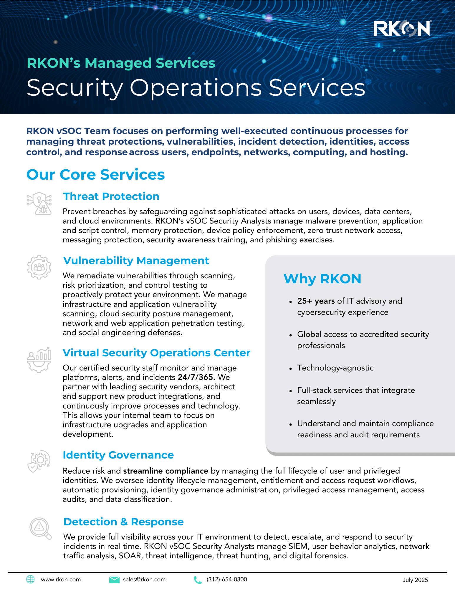 Explore our library of datasheets showcasing how RKON can help you control, secure, and monitor your business, ensuring peace of mind and proactive protection for your organization. Let’s turn challenges into opportunities. Dive in to find the right solutions tailored to your needs.